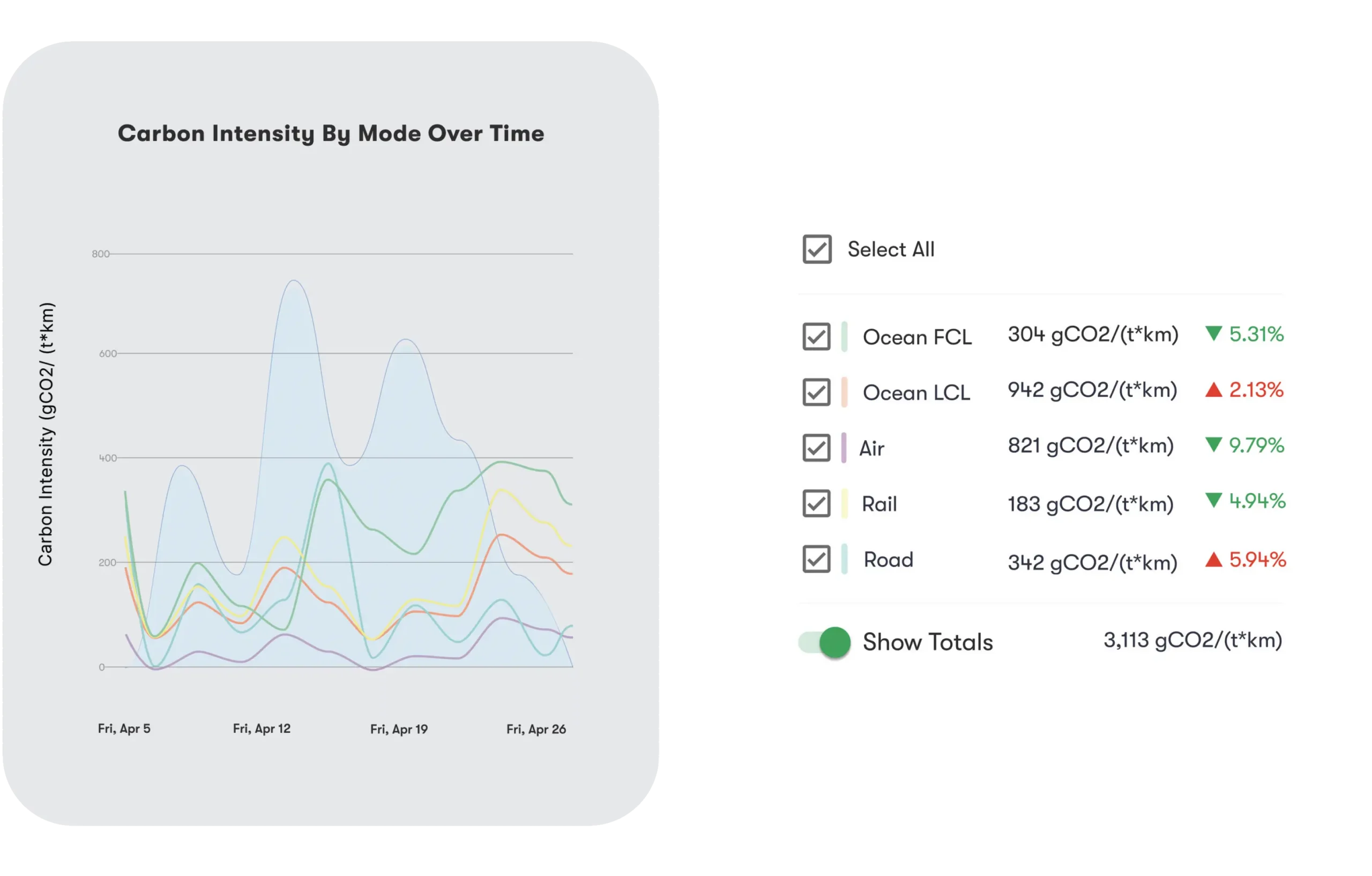Make more environmentally conscious decisions based on built-in carbon intensity analysis across all your shipments.