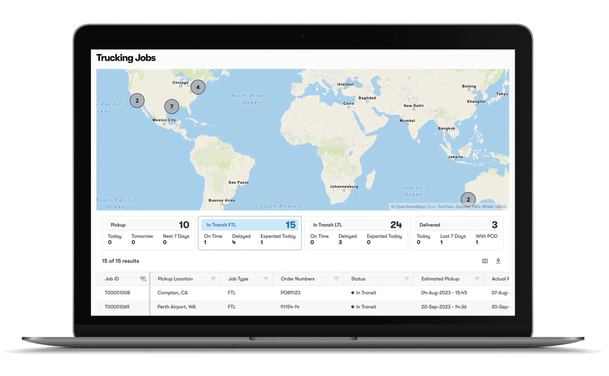 One central platform to view all your trucking jobs and their statuses, with powerful filters and intuitive map views.